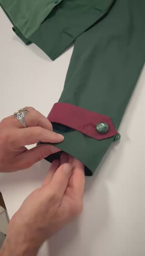 Le maniche extra lunghe e gli inserti bordeaux in vita e ai polsi donano un contrasto deciso e contemporaneo.